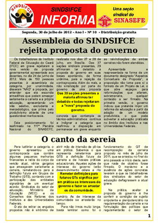 Assembleia do SINDSIFCE rejeita proposta do governo - Julho 2012